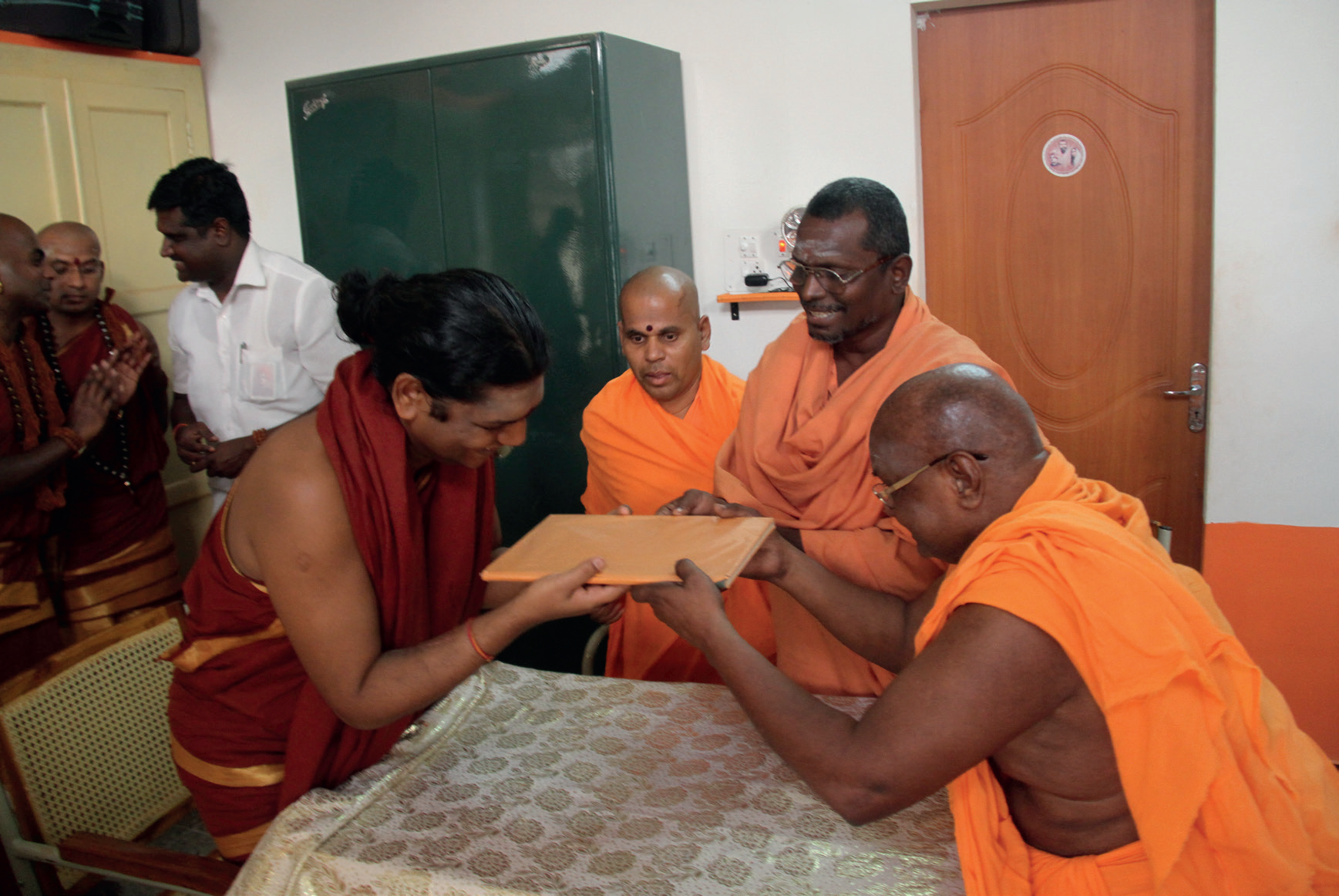 15 April 2014 – Swami Atmanandaji offers the official documents of the 5 prestigious kingdoms